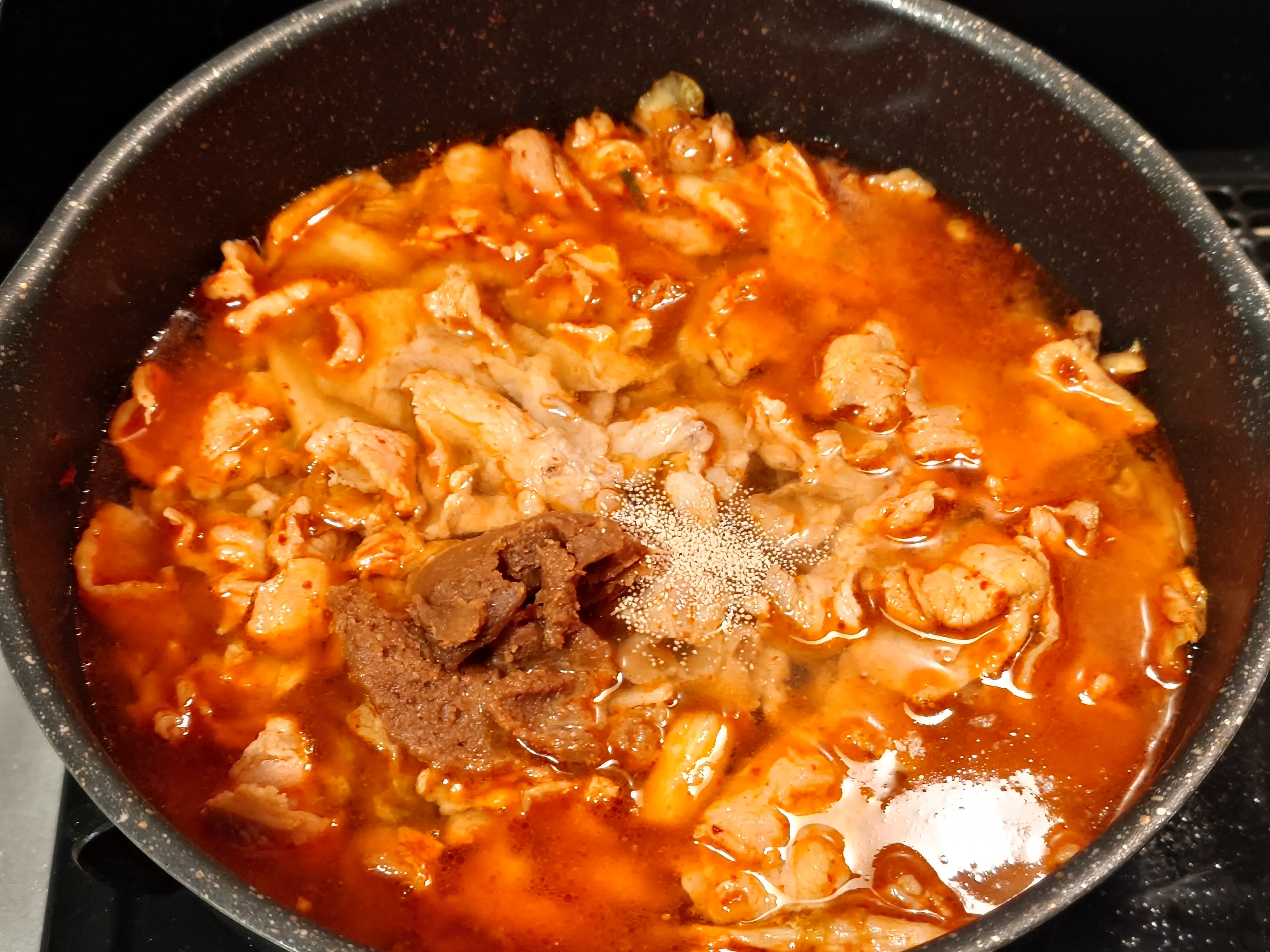 →辛さひかえめにしたい場合は、甘口キムチを使用し豆板醬は無しでOK!