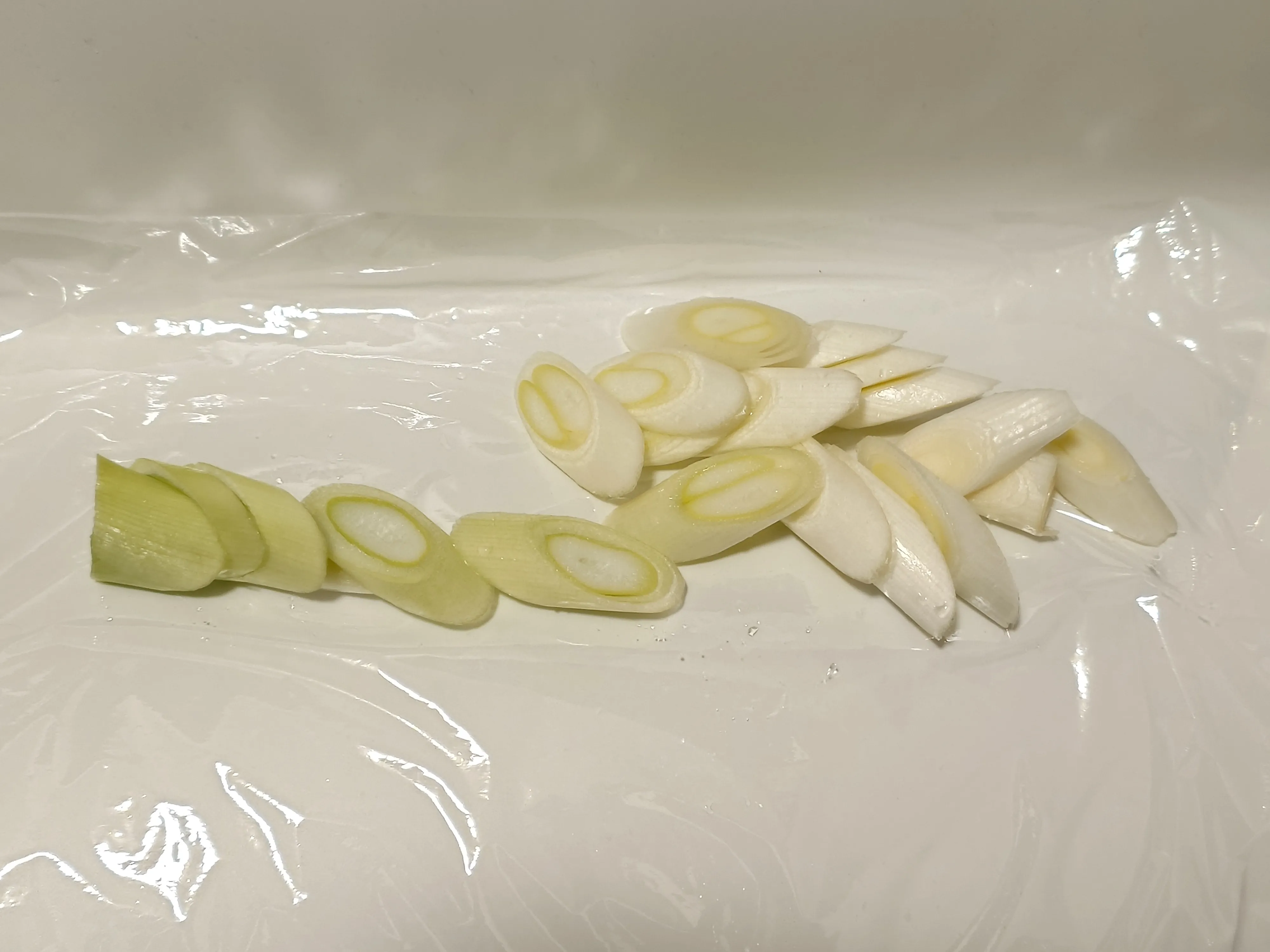 ねぎを幅1㎝にななめ切りにする。