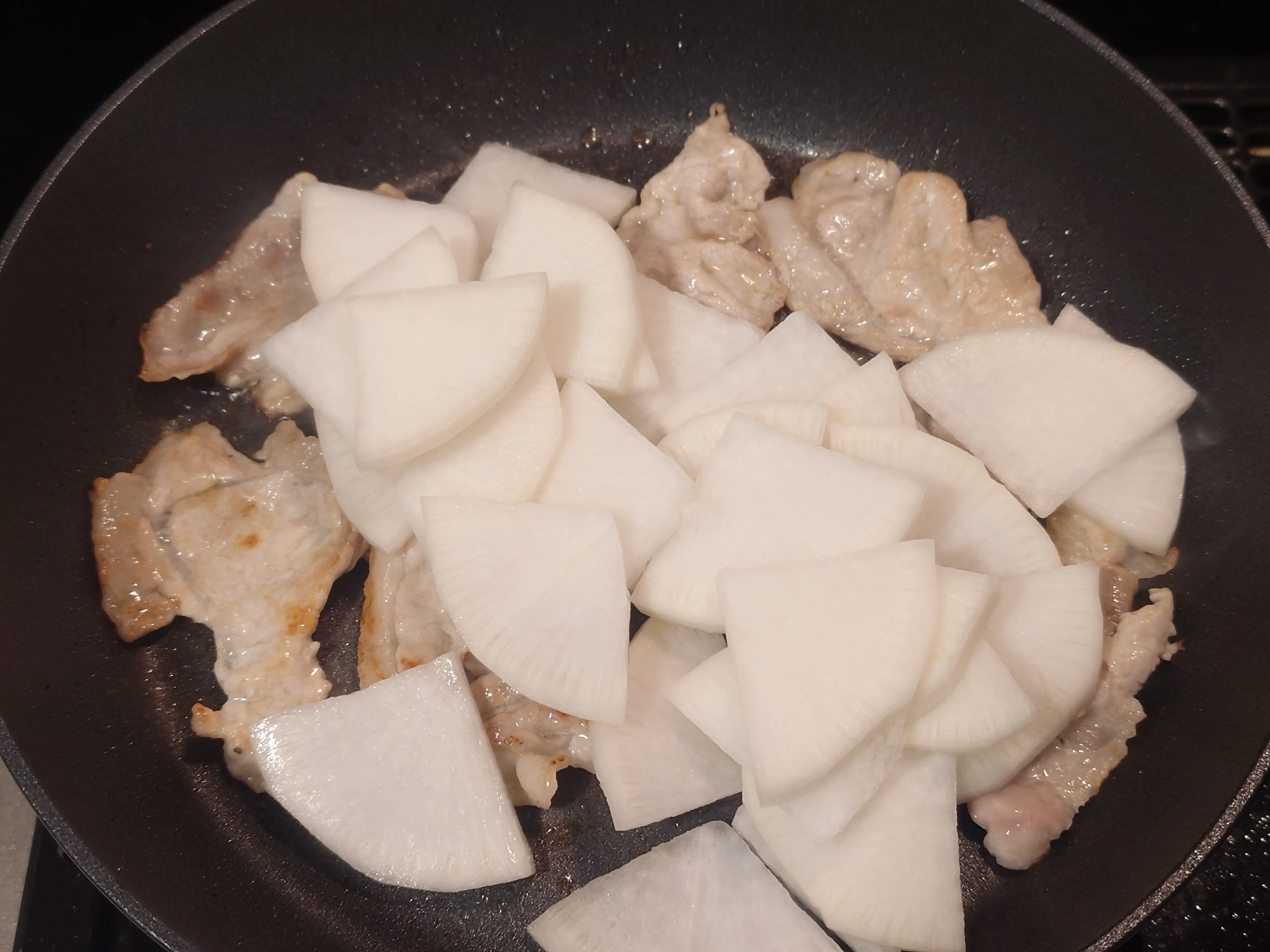 フライパンに大根を入れ、色が透き通るまで炒める。