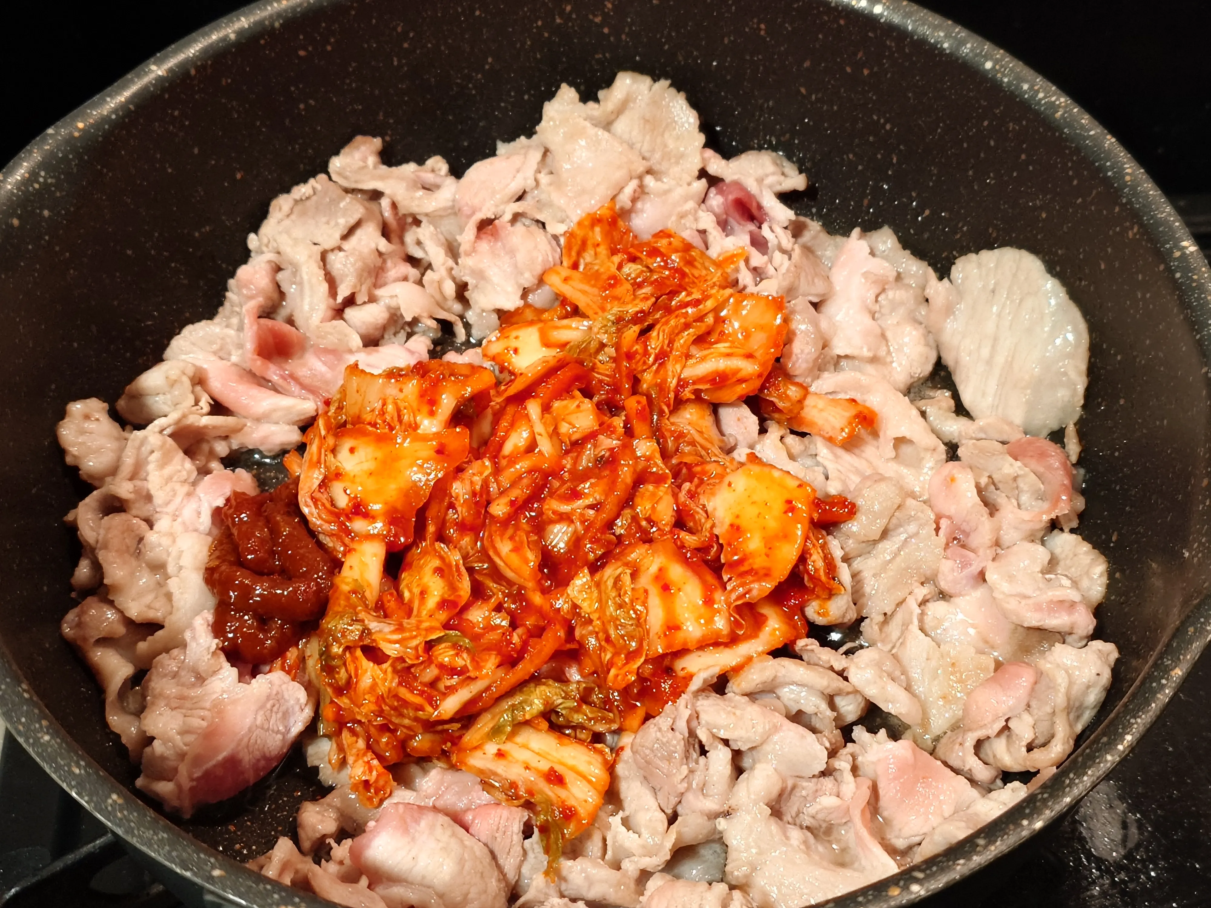 →辛さひかえめにしたい場合は、甘口キムチを使用し豆板醬は無しでOK!